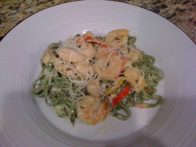 Straight from the california pizza kitchen's cookbook, recipe features creamy tequila chicken fettucini with jalapenos, garlic, cilantro and yellow, red and green bell.